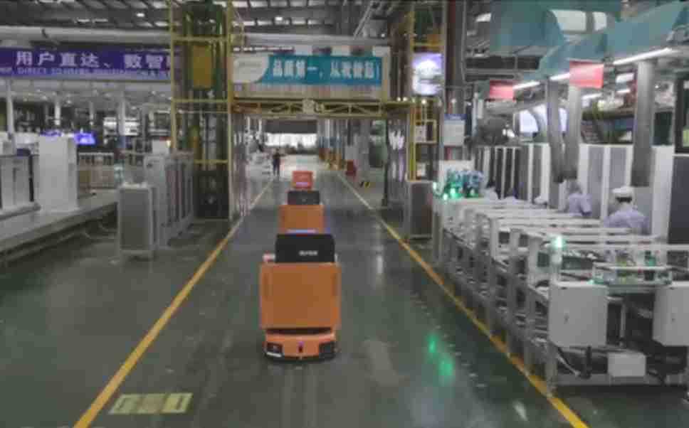 为车载冰箱物流配送打造的智能解决方案,,包含产中物流通过潜伏举升AMR搬运至线边,,,产后成品物流智能仓储,,,流程包含产中物流智能齐套入库,,,线边安灯叫料AMR智能配送至线边,,成品入库、、、出库,,,通过无人堆高车机器人,,,智能仓储管理替代人工作业管理,,实现更高存储、、更高效率、、、更具柔性化的解决方案。。。。